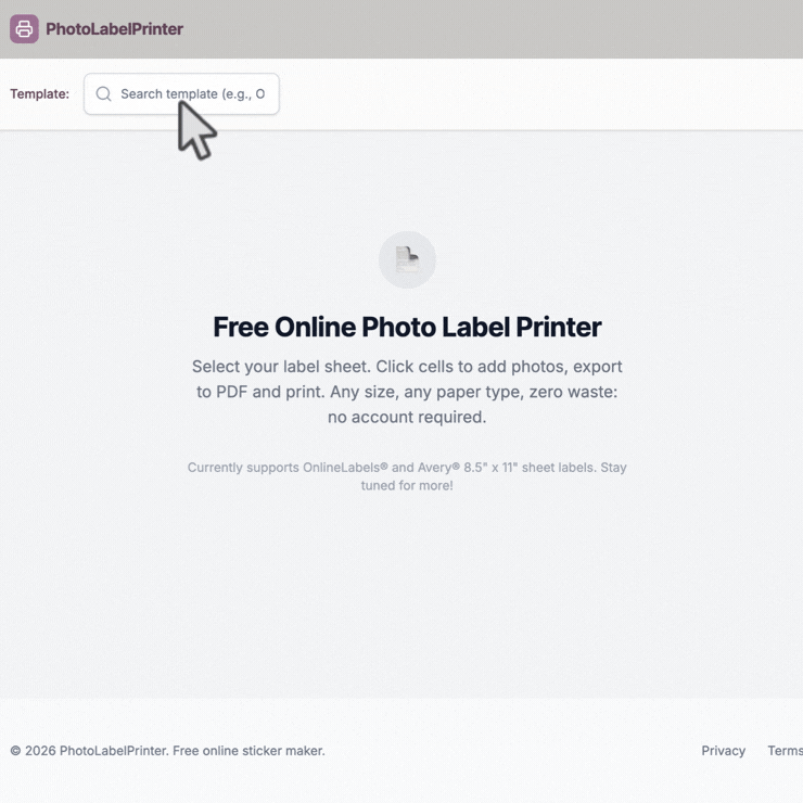 No account needed — just upload, arrange and print your favorite label sheets effortlessly.